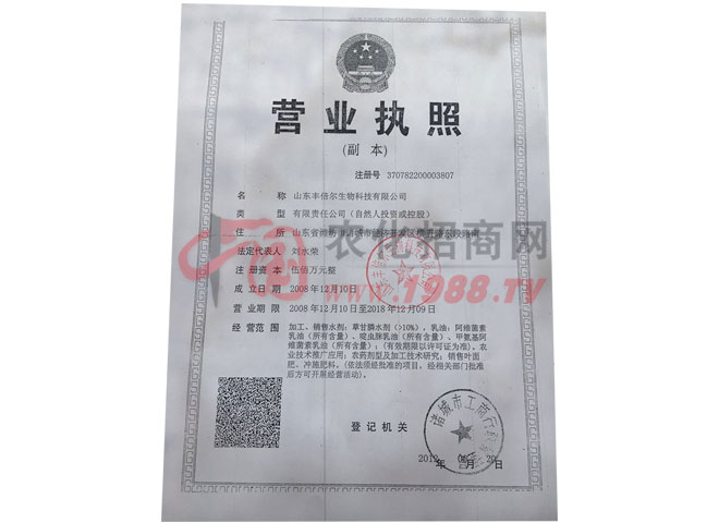 山東豐倍爾生物科技有限公司追求,豐倍爾作為一家集科研開發(fā)、生產(chǎn)銷售、技術(shù)咨詢于一體的現(xiàn)代農(nóng)業(yè)高科技企業(yè),于2004年在山東諸城成立,先后與“中國農(nóng)業(yè)大學(xué)”、“山東農(nóng)業(yè)大學(xué)”、“青島化工學(xué)院”等科研院校緊密合作,傾力打造業(yè)內(nèi)更具有影響力與更受歡迎的農(nóng)藥品牌,現(xiàn)有殺蟲劑、殺菌劑、除草劑、植物調(diào)節(jié)劑、葉面肥、沖施肥等五大系列近百個品種。劑型包括乳油、微乳劑、水乳劑、懸浮劑、油懸劑、可濕性粉劑、顆粒劑等。隨著國家發(fā)改委和農(nóng)業(yè)部對農(nóng)藥企業(yè)政策的進一步改變,生產(chǎn)環(huán)保型產(chǎn)品,為農(nóng)民創(chuàng)造效益,為客戶創(chuàng)造利潤,為社會創(chuàng)造價值,我們一直在努力。