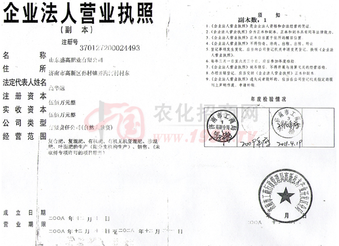 山東盛高肥業(yè)有限公司是山東省內(nèi)較大的一家集研發(fā),生產(chǎn),銷售為一體的肥料生產(chǎn)企業(yè)。公司應(yīng)用山東省林科院土肥所的研究成果,“高效經(jīng)濟(jì)林木,經(jīng)濟(jì)作物平衡施肥技術(shù)研究與產(chǎn)業(yè)化開發(fā)”,“新型經(jīng)濟(jì)林木緩釋肥的研制與開發(fā)”(031030102),國(guó)家發(fā)明專利(200810014229.5)等,研制生產(chǎn)了緩釋性“益植素”脲甲醛工藝復(fù)合肥,有機(jī)----無機(jī)復(fù)混肥料,高活性有機(jī)肥料等產(chǎn)品。公司坐落于山東濟(jì)南,始建于2008年,企業(yè)肥料生產(chǎn)工藝先進(jìn),裝備精良,技術(shù)力量雄厚,檢測(cè)設(shè)備完善齊全,F(xiàn)擁有國(guó)內(nèi)新型的,具有國(guó)際質(zhì)量標(biāo)準(zhǔn)要求的復(fù)合(混)肥料生產(chǎn)線,有機(jī)肥料生產(chǎn)線,沖施肥料生產(chǎn)線等,形成年生產(chǎn)復(fù)合肥料20萬噸,生態(tài)有機(jī)肥料10萬噸,有機(jī)-----無機(jī)復(fù)混肥20萬噸等多種規(guī)格產(chǎn)品的生產(chǎn)能力。