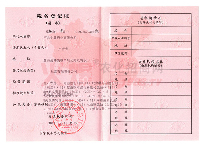 證書名稱:稅務登記證 發(fā)證機構:國家稅務總局