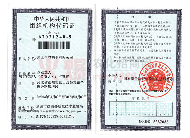 證書名稱:組織機構代碼 發(fā)證機構:國家質(zhì)量監(jiān)督檢查檢疫總局