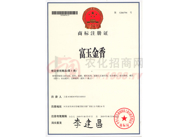 • 商標(biāo)注冊證-富玉金香商標(biāo)注冊證-富玉金香